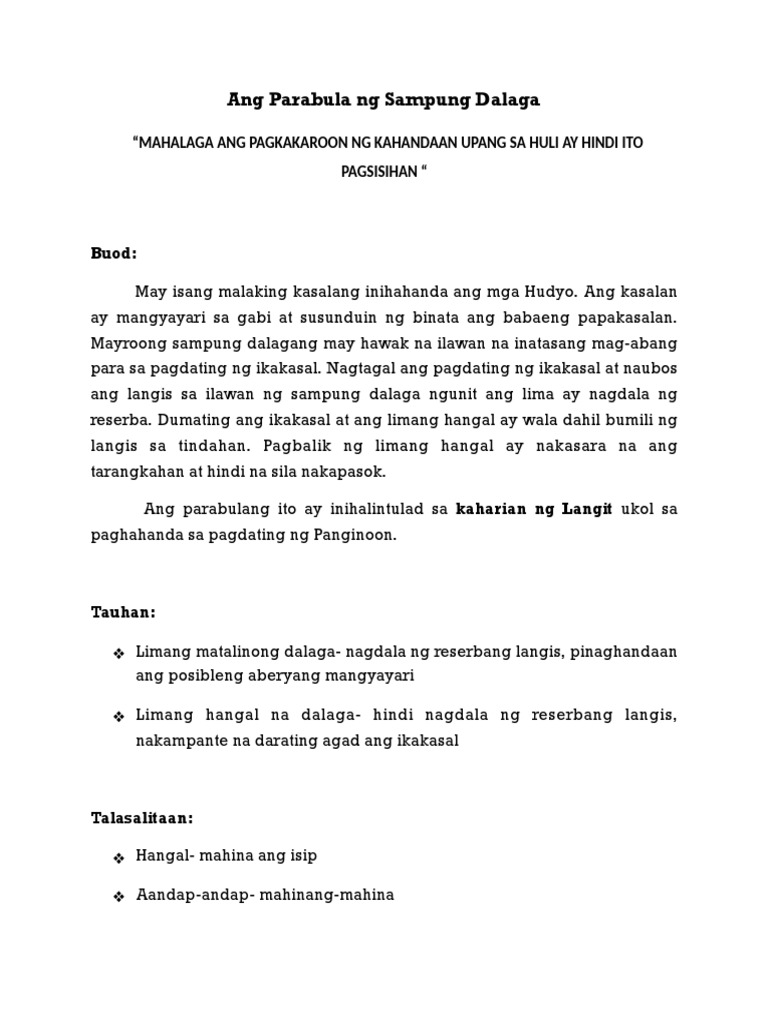 Kritika Ng Ang Parabula Ng Sampung Dalaga Pdf
