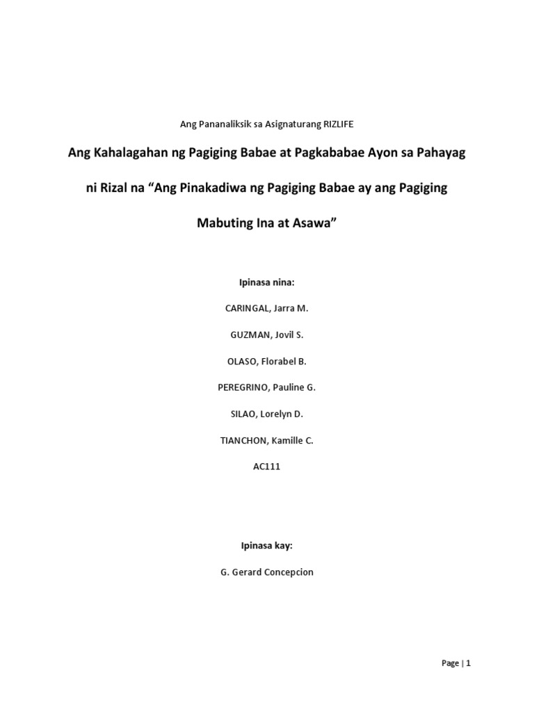 Kahalagahan Ng Pagiging Babae At Pagkababae Rizlife Pdf